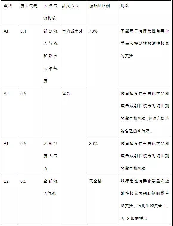 Ⅱ級安全柜按排放氣流占系統(tǒng)總流量的比例及內(nèi)部設(shè)計(jì)結(jié)構(gòu)分為A1、A2、B1、B2四種類型。